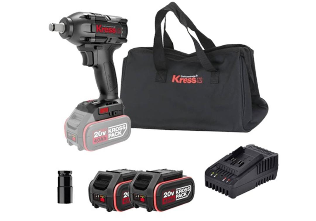 מפתח רטיטה/ אימפקט 1/2 דרייב 300 NM בראשלס נטען 20V + 2 סוללות 4 אמפר + מטען + תיק בד
